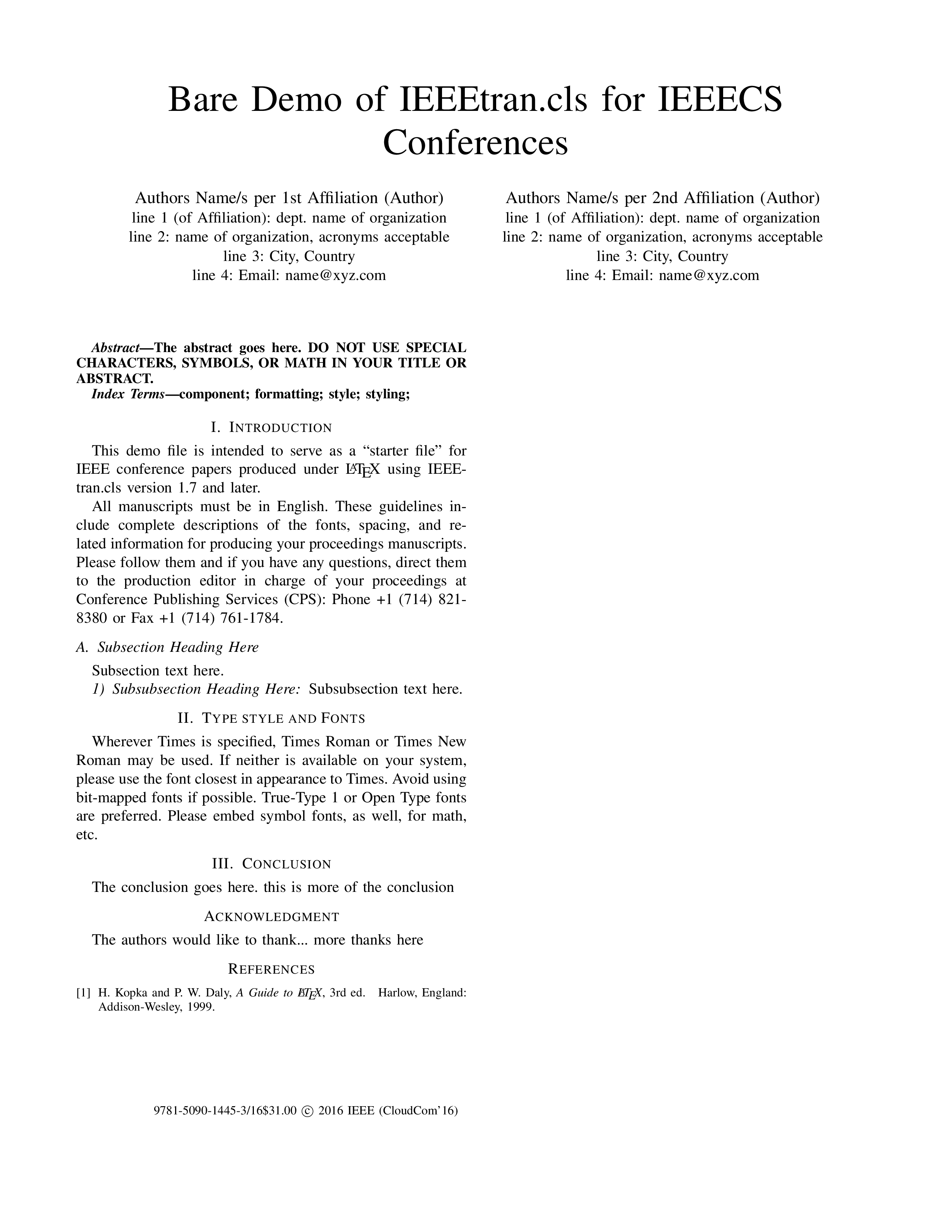 978-1-5090-1445-3/16/$31.00 ©2016 IEEE (CloudCom'16)- for workshops, replace